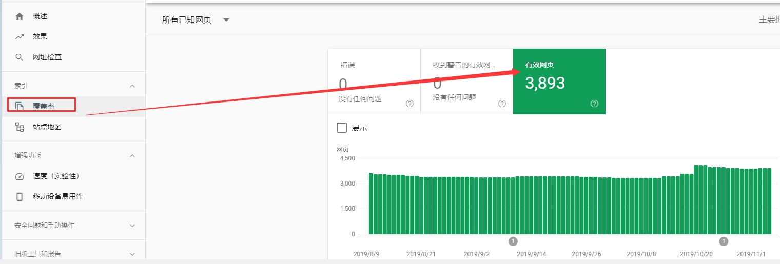 这里主要分析我们的网站被搜索引擎网站收录的情况,对于验证SEO的成效非常有作用,通过数据分析还可以预控网站出现意外情况,主要通过谷歌官方的谷歌站长工具查看,例如: