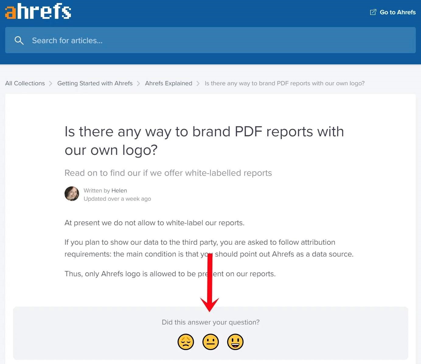 例如下面ahrefs的FAQ,会有一个评价反馈。