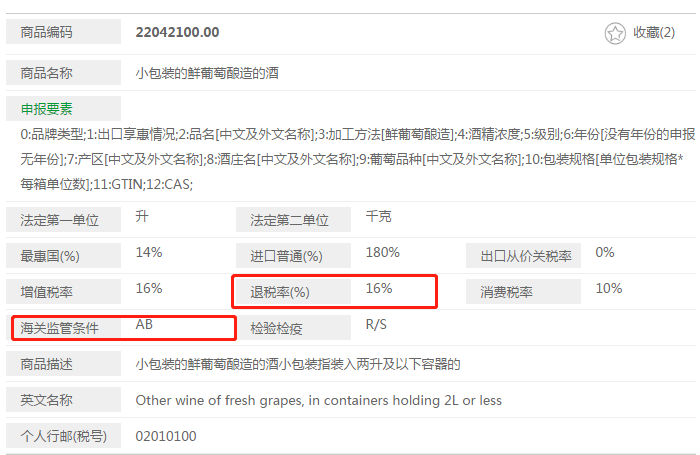 2、点击查看详情后,就可以查到退税率以及该商品是否需要做商检: