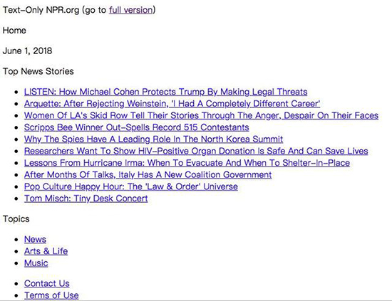 (美国公共广播电台的纯文字版网站)