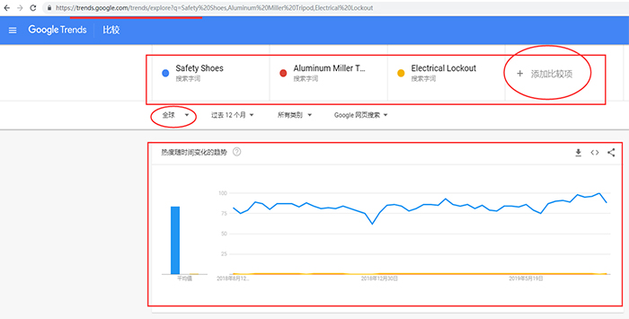 google Trends其实有很多妙用【比如:关键词提示、热度查询等】,我们这里简单介绍一点,当我们企业有很多产品的时候,如何选择产品的重点方向进行销售很关键。