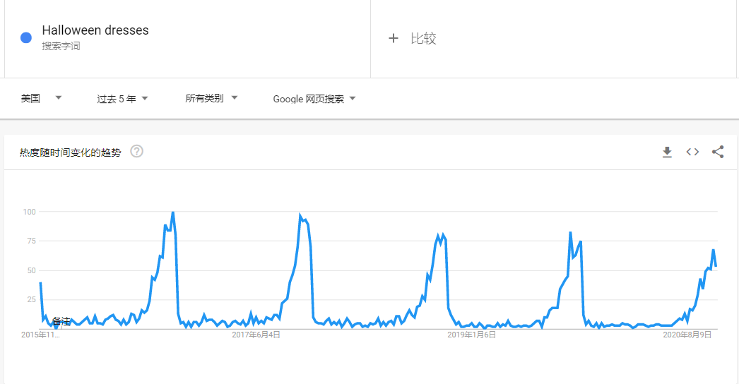 通过定义不同的时间段,可以了解一个词的长期趋势和短期趋势。按类别过滤也是必不可少的,选择自己想要搜索的类别,数据将会更准确。