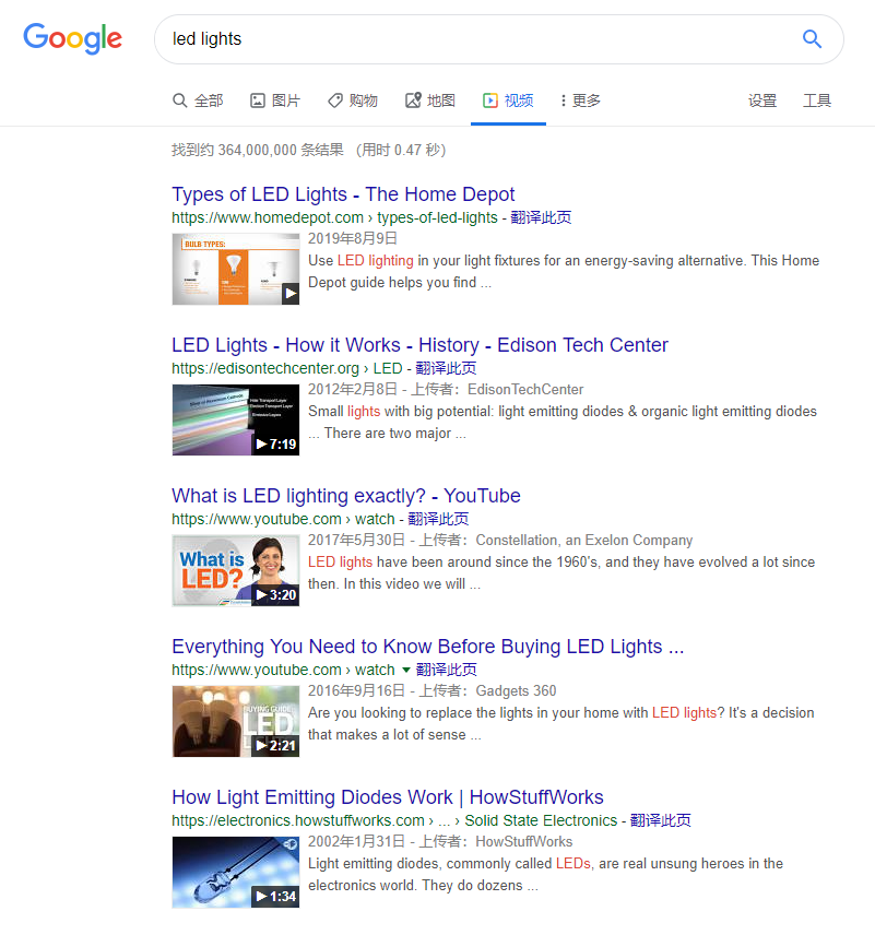 一般来说,Google更倾向于把以下几种类型的视频关键词,出现在搜索结果页面: