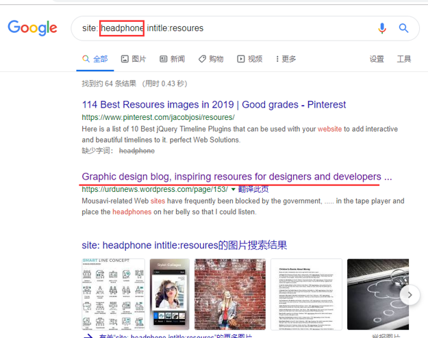 可用site: keywords intitle:resoures
