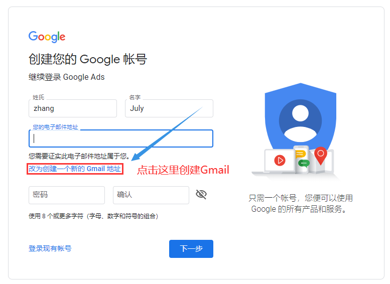 我们在使用谷歌关键字规划师之前,需要申请一个谷歌Ads账号。最好是新申请一个Gmail邮箱来注册。