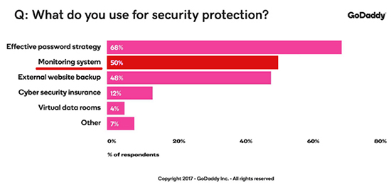 根据GoDaddy的研究显示,只有50%的受访企业表示他们在使用监控系统来保护自己网站的安全。
