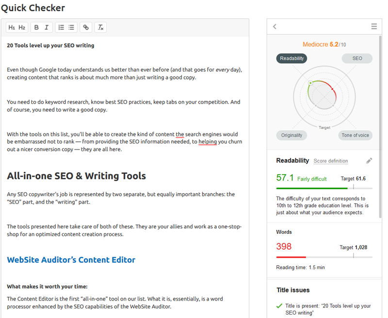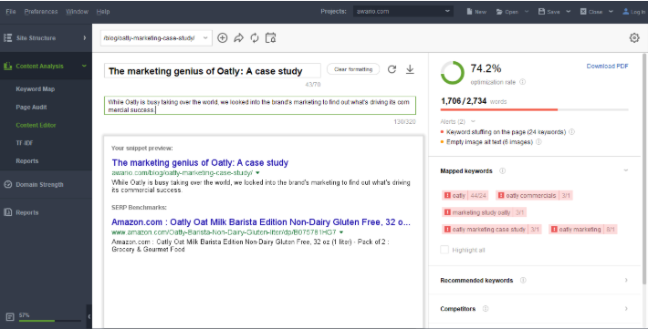 本质上,内容编辑器是一种通过WebSite Auditor的SEO功能,来优化文字内容的工具。