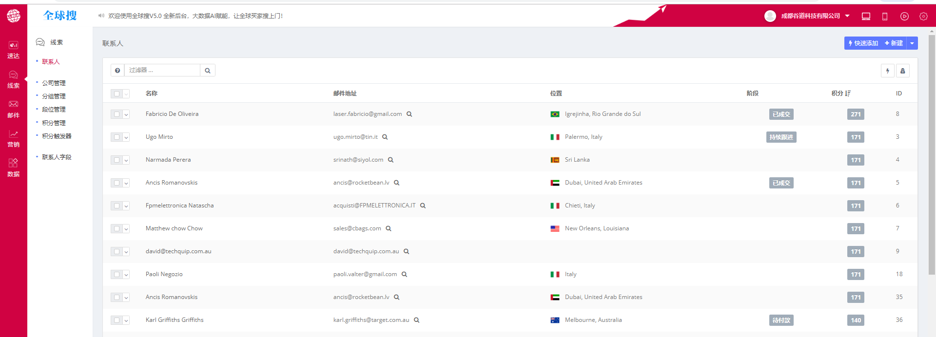 如果你靠人为的去翻查客户绝对是在浪费你的时间!CRM系统绝对能给你节约大量的人力成本,数据大师内自带积分与阶段排序,你只需要点点鼠标,就能快速排查出互动频繁,在网站活跃的客户。