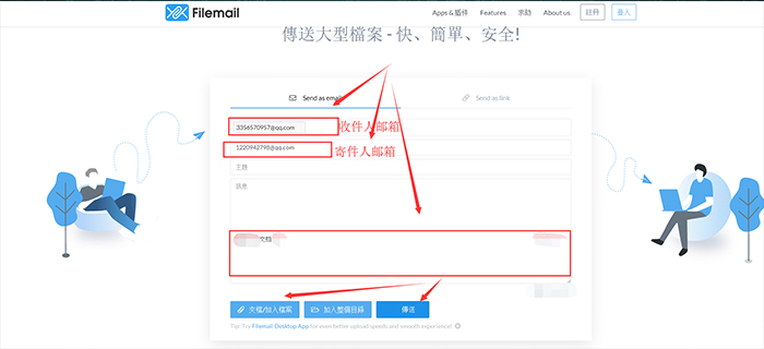 有些外贸行业有时需要给客户传视频之类的几十个G的大文档,如果选择寄CD给老外的话,运费会非常昂贵,让老外下载百度云盘类的工具一般也不妥当,通过该网站,输入你的email,客户email,然后上传文件后点击传送。他邮箱里就出现一个连接,直接点连接就能下载了