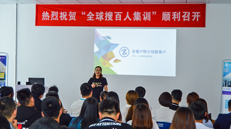 随后,2018年全球搜第一季度销售冠军Lisa做了关于老客户转介绍新客户的经验分享,Lisa通过自己多年从事一线销售的经验以及结合自身的一些亲生经历,生动形象地让大家明白老客户的重要性以及如何去维护和老客户的关系并如何转介绍新客的方法。