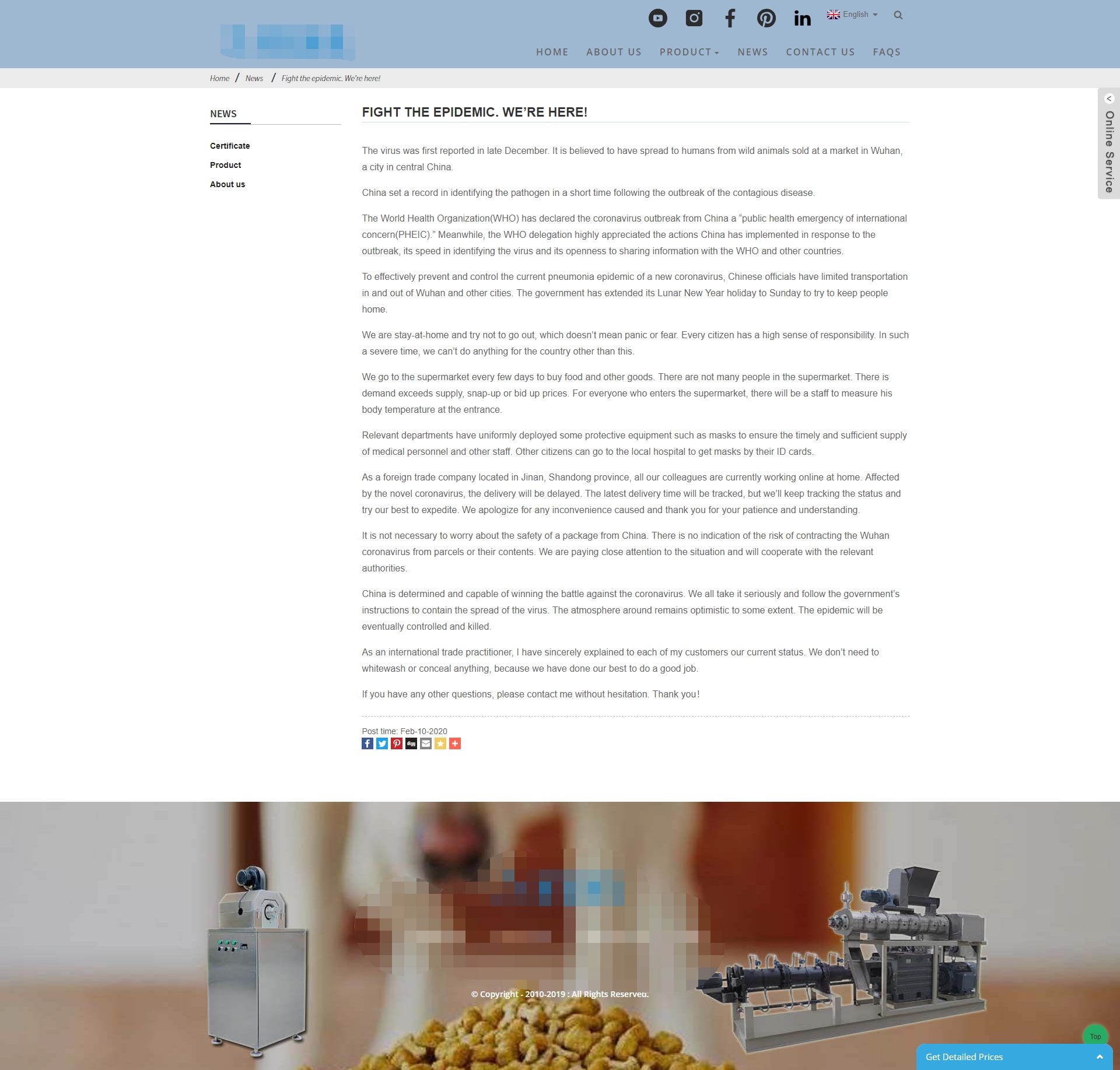 当企业有自己的外贸官网,加上全球搜的软实力,那我们就可以在自己的官方宣传平台向大家展示目前的中国真实疫情,大的层面可能我们无法触及,那就在自己的官网、在自己力所能及的范围内,从一张张小小的banner图、一篇篇真实的新闻内容出发。