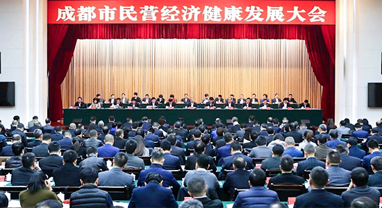 省委常委、市委书记范锐平出席大会并发表讲话,他对成都市人民政府关于促进民营经济健康发展作出报告:从税费、用工用地用能、物流等方面降低民营企业经营成本;缓解民营企业融资难、融资 贵,加强信贷保险支持,支持开展直接融资,推动金融改革创新;支持民营企业创新创造,精准扶持、重点培育一批具有行业竞争力的高新技术企业;支持民营企业做强做优,壮大市场主体,拓展发展空间,鼓励参与军民融合发展;加强民营企业合法权益保护;营造法制化、国际化、便利化营商环境。