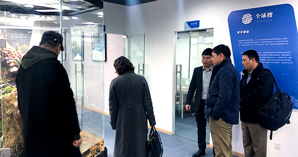 2018年12月6日下午,中国国际电子商务中心副总裁、理事长陆建栋,中国电子商务产业园发展联盟秘书长陈岗,以及中国国际电子商务中心四川代表处总代表陆艳等领导莅临全球搜考察指导工作,全球搜CEO蒲竞超陪同。