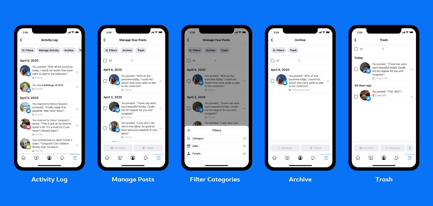 根据Facebook的说法,该功能的目的是 “让你可以轻松地在Facebook上策展你的存在,更准确地反映出你今天是谁。” Facebook举了一个例子,有的人在大学毕业后,即将开始全职工作的时候想删除旧的内容,或者删除那些让人联想到旧的关系的帖子。
