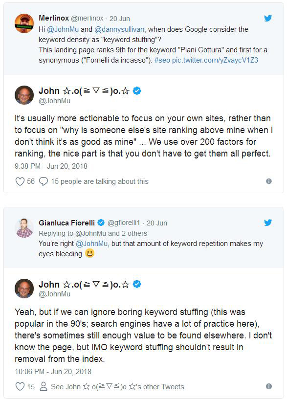 更具体地说,用户担心的是有明显的关键词重复堆砌迹象的页面,在搜索结果中的排名仍然很好。