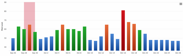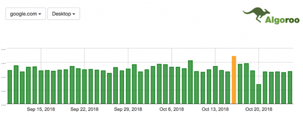 谷歌算法跟踪工具,数值越高,算法调整越大,反之越正常