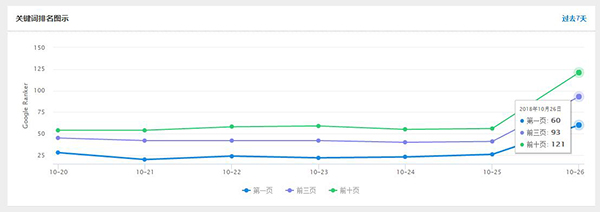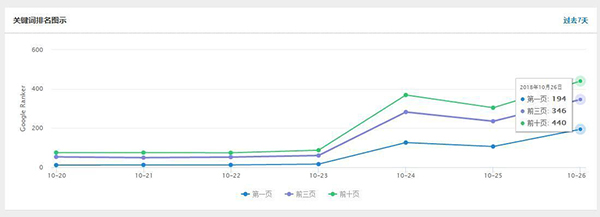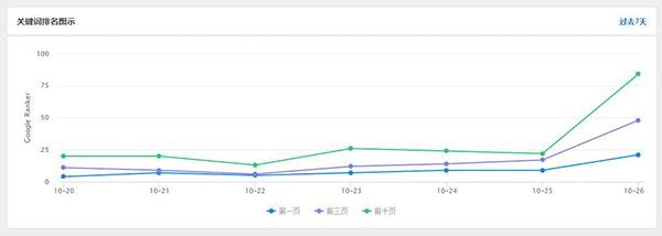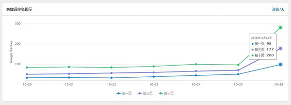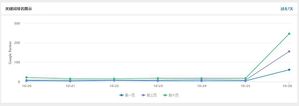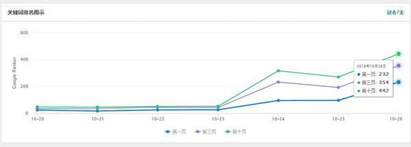排名跟踪工具,可以看到从10月16-26日,排名严重下滑