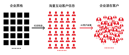 HaGro【黑格增长】通过AI技术抓取你所在行业的社交大数据,形成你的“企业黑格”,根据对每一个“企业黑格”的社交轨迹进行深度挖掘,获取到海量的客户信息,形成AI用户画像,帮助企业快速锁定潜在客户。