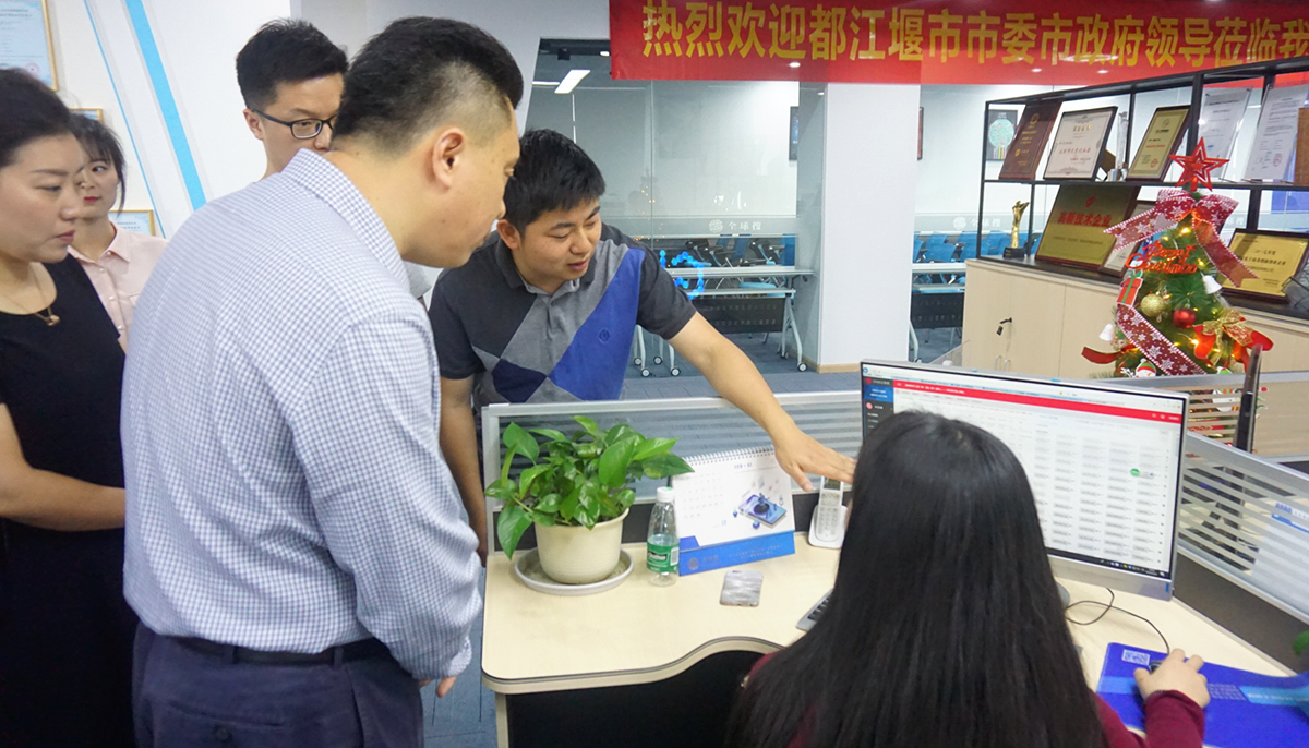 4月24日,中共都江堰市市委副书记张明莅临成都谷道科技有限公司技术总部调研。市经济科技和信息化局局长林天富,机关党委书记廖洪贵,市工商联主席、精华灌区管委会主任万灵,市商投局副局长张跃等陪同调研。成都谷道科技有限公司CEO、全球搜创始人蒲竞超热情接待,谷道科技技术总监程翱、首席运营官贾卫、售后总监王娟等陪同接待。