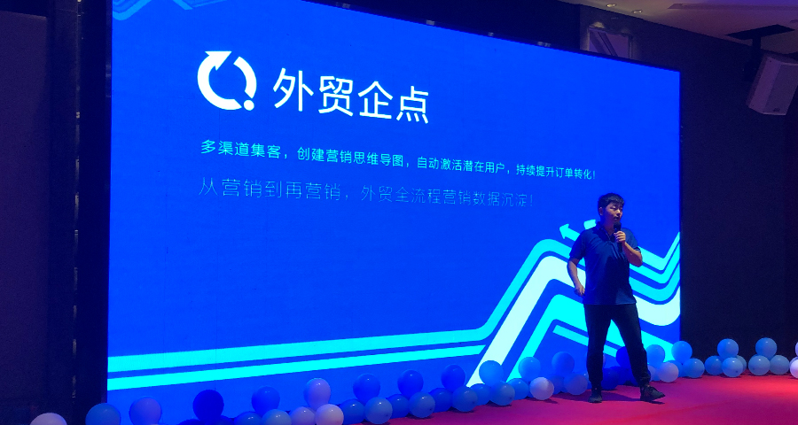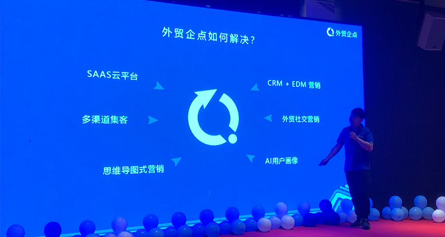 重头戏来临!谷道科技CEO、全球搜创始人蒲竞超向大家介绍了2019年全球搜在技术上取得的新成绩,并向大家隆重介绍了新的外贸产品——外贸企点!