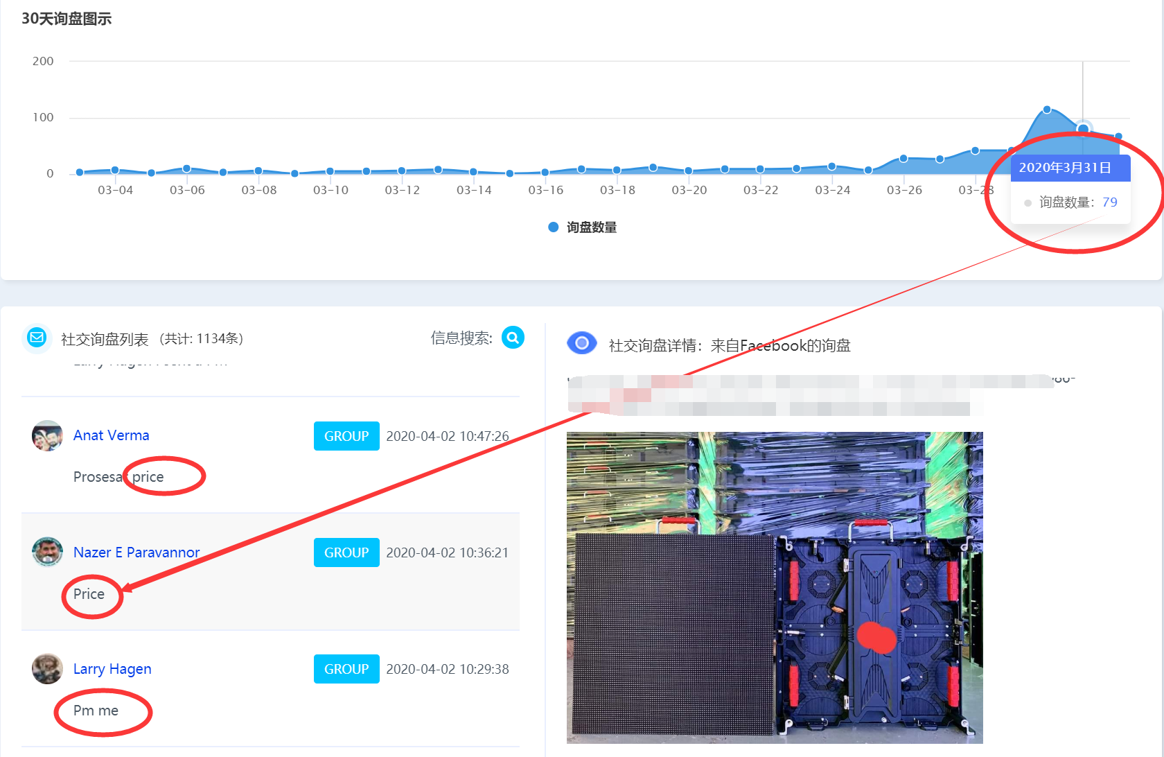 整合了各大社交平台的信息,只要输入关键词,就可以查询到与该关键词相关的社交咨询(包括评论,帖子),让外贸企业在第一时间,与意愿采购者取得联系。