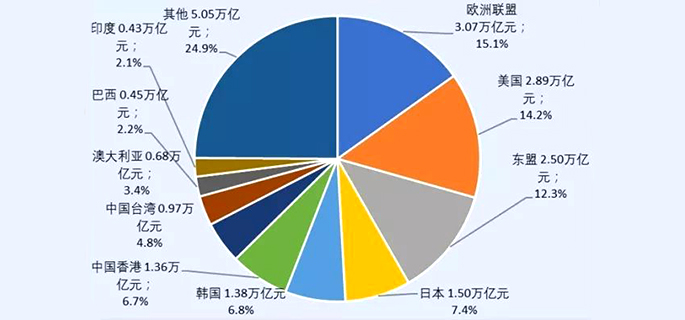 (2017年前三季度中国与主要贸易伙伴进出口情况及所占比重)