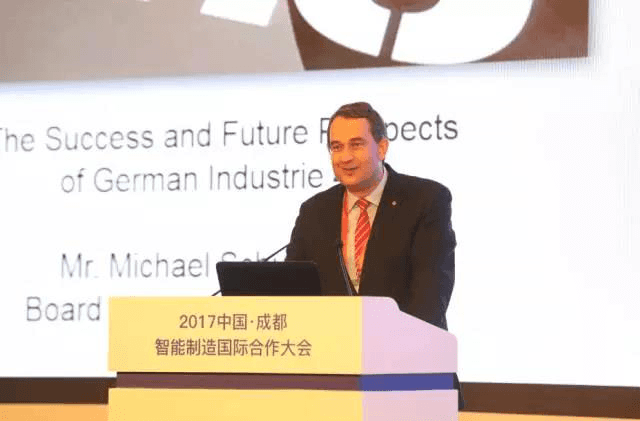 为了务实探讨智能制造的国际合作,此次大会特别邀请中德智能制造联盟作为共同主办方,希望以中德合作的成功案例为范本,以中德两国优秀智能制造企业的发展经验,为国际间合作和成都制造业的加速发展提供有价值的借鉴。来自德国联邦经济发展与外贸协会董事迈克尔•舒曼在会议上发表主题演讲。他提到,工业4.0并不是第四次的工业变革,或者一系列具体的技术变革,提到工业4.0时要强调的是政策的推动和战略的推动所带来的成功,工业4.0推动了制造行业的数字化,包括智能工厂、人机工程、互联网物联网的建设都是它所取得的成绩。