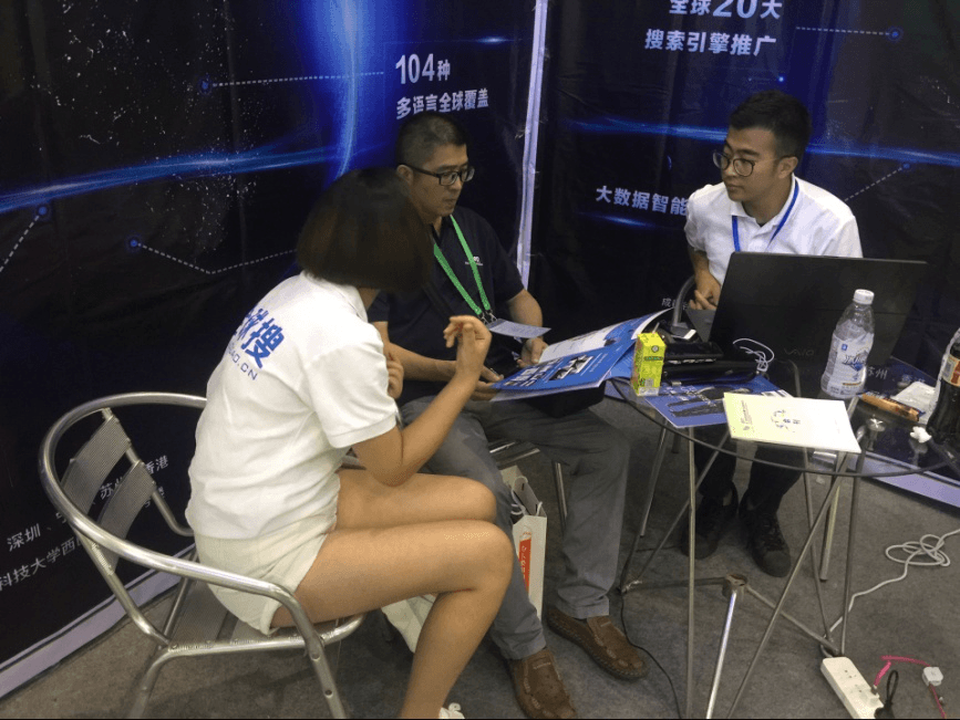 展会期间,各行各业企业家们也积极到外贸全球搜展会前台咨询交流,博览会现场外贸全球搜CEO蒲竞超结合现阶段外贸发展趋势,向企业家们介绍了外贸整合营销整体情况,以及未来外贸全球搜如何利用自身优势与创新技术,为中国企业营销海外解决更多的实际问题。